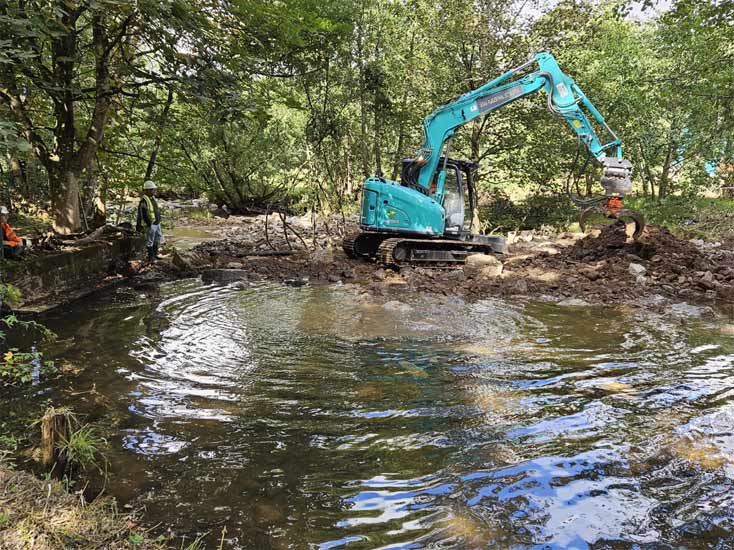In the summer of 2025 a long running project to replace the wier came to fruition. The old weir was becoming undermined and was in danger of collapse during big storm events. The weir is essential for the mill as it maintains the head of water that is needed for the mill to run. A collapse of the weir would mean that milling would have to stop.