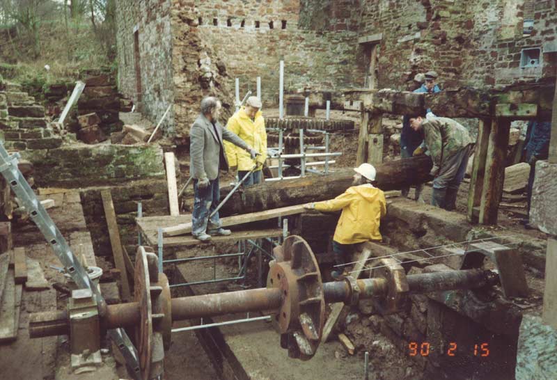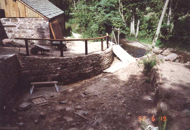 The wheel house is a lean-to structure on the North side of the mill covering the wheels and wheel pit. it was mostly missing at the start of the restoration with just the base of the wall present.