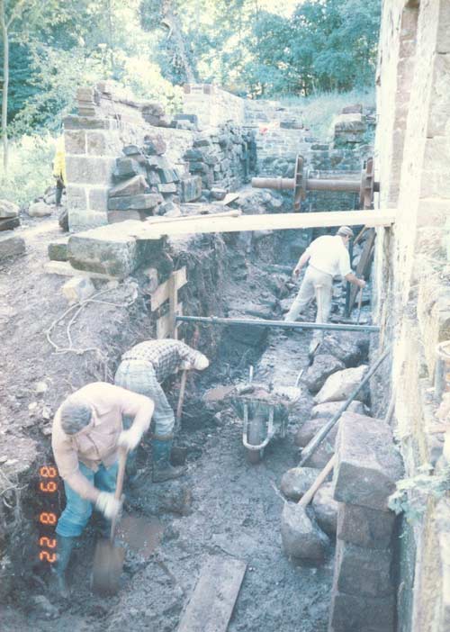 Two of the three waterwheels were in place in 1981, but as can be seen in the pictures below they were not in a very good state.